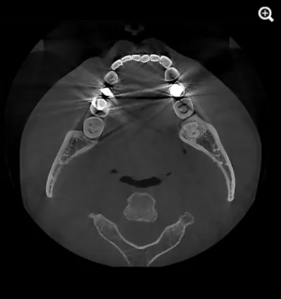 When capturing a CBCT scan, the presence of metal in the oral cavity can introduce artifacts, shadows, and bright streaks that significantly compromise image quality. These distortions may obscure critical anatomical structures, making it more difficult to evaluate bone integrity and surrounding areas—adding complexity to diagnosis and increasing clinical stress.